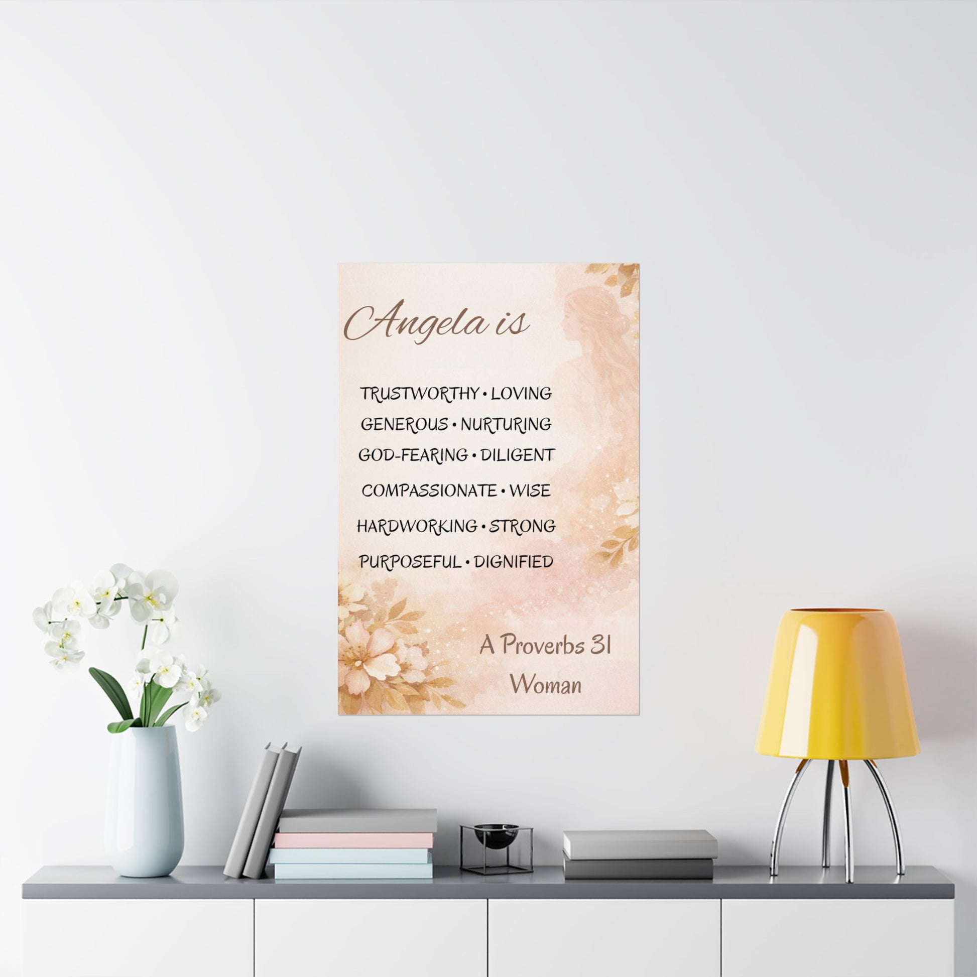 Soft, quiet, and reverent — this satin poster reads like a gentle reminder hung where it will be seen each day. Warm blush tones, whispering florals, and an elegant script invite pause and reflection. The design lists character qualities in a graceful, readable type that feels like an encouraging note from a friend or mentor. It blends into bedroom nooks, entryways, and prayer corners, adding a subtle devotional touch without shouting for attention. Hang it with a frame or clips, tuck it behind a mirror, or place it above a dresser to create a calm, personal altar that honors faith and daily intention.